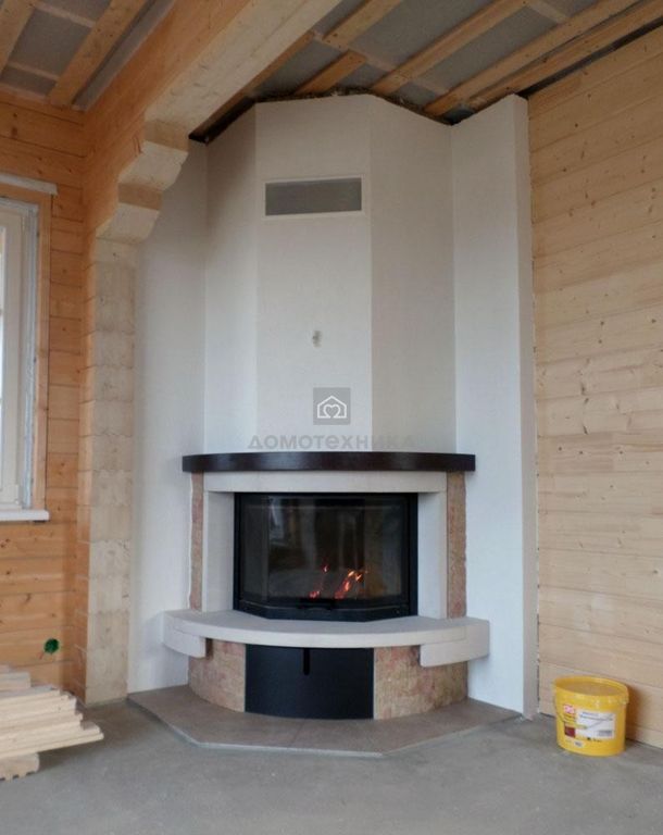 Топка дровяного камина с призматической формой дверки. Закрытая топка со стальным корпусом и широким обзором огня. Эркерное составное огнеупорное стекло. Очаг с чугунной футеровкой. Плавный подъем дверцы-гильотины. Топка может устанавливаться как с пристенной облицовкой, так и в угловой версии камина.