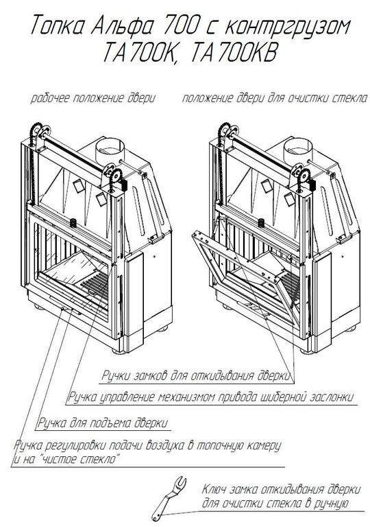 Все топки разработаны таким образом, что их можно топить, с открытой и закрытой дверцей топки, независимо от наличия или отсутствия подъемного механизма. Мы рекомендуем топить топку с закрытой дверцей, в этом случае вы получаете максимальную тепловую эффективность и безопасность.