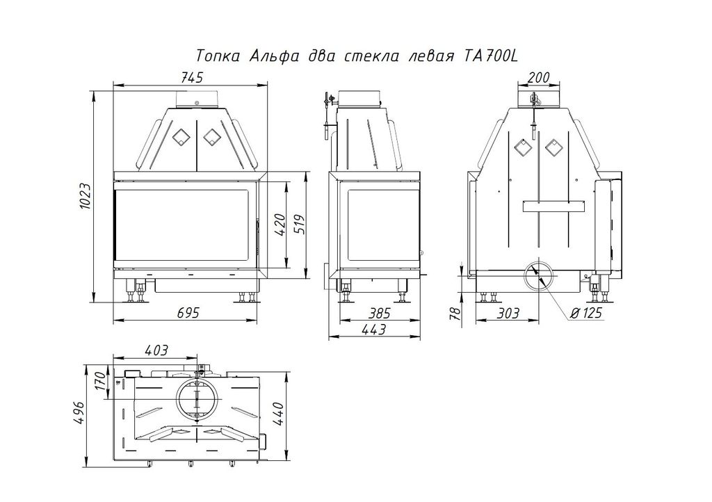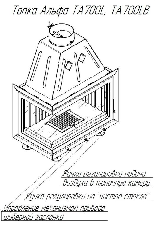 Каминная топка Альфа 700 L два стекла левая, Экокамин (Россия)