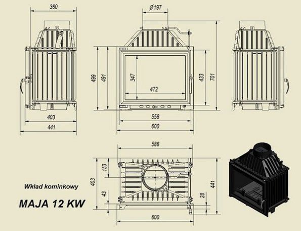 Ширина видимой части топки (мм) 677