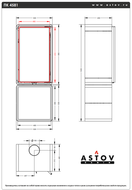 | Диаметр дымохода | 150 |