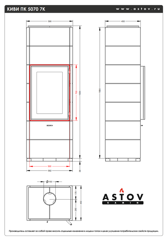 | Диаметр дымохода | 150 |