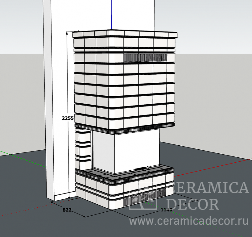 Габариты облицовки: высота - 226 см, ширина - 114 см, глубина - 82 см. Вес облицовки: 270 кг
