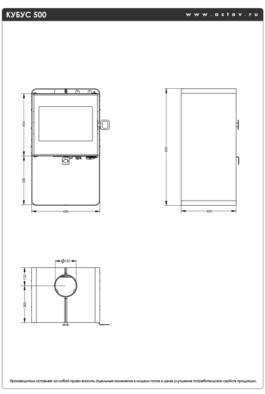 | Диаметр дымохода | 150 |