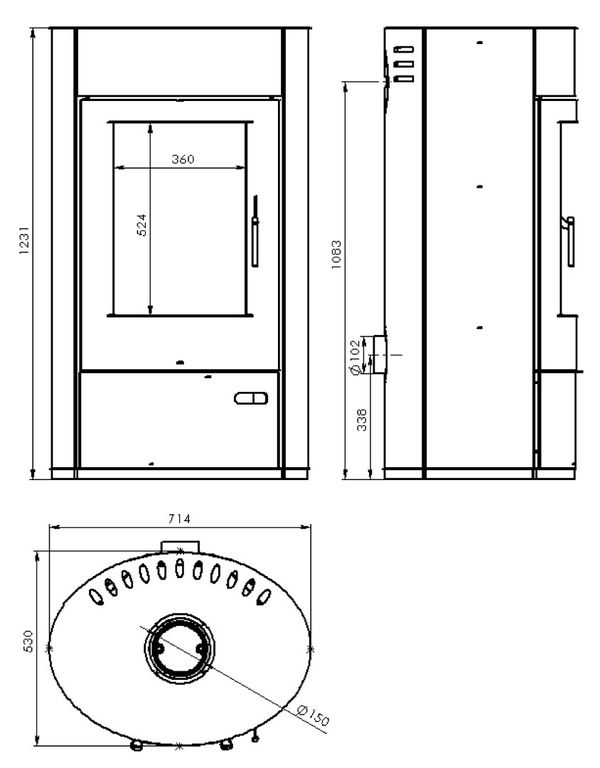| Диаметр дымохода: | 150 мм. |