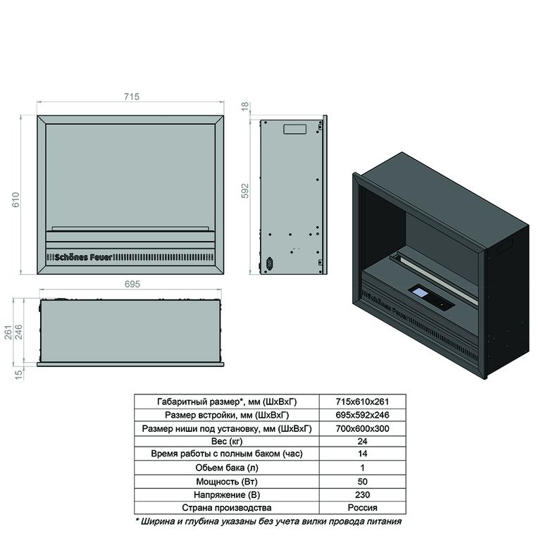 - Встраиваемый размер (ШхВхГ): 695x592x300