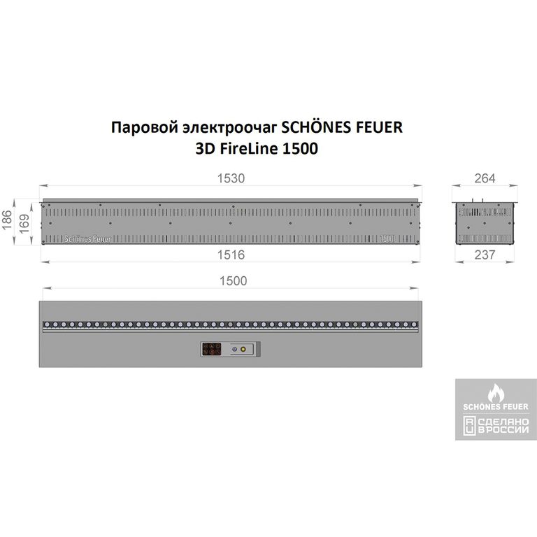 - Габаритный размер (ШхВхГ): 1530х186х264