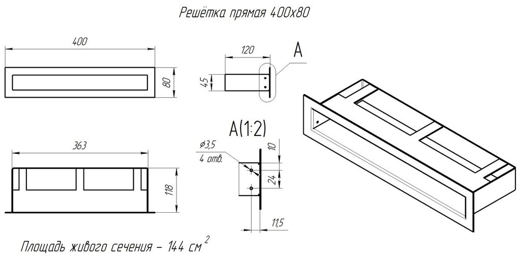 - Размеры (Ш х В х Г), мм — 400 x 80 x 120