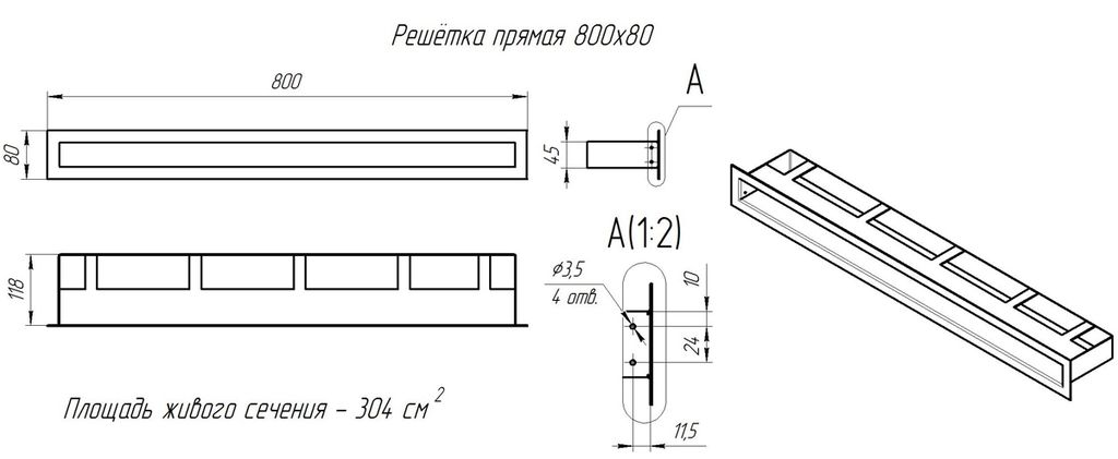 - Размеры (Ш х В х Г), мм — 800 x 80 x 120