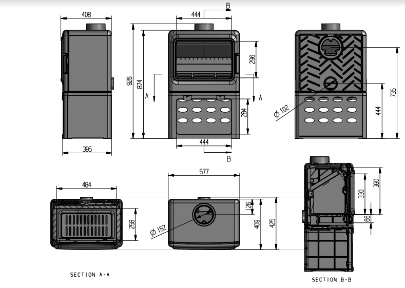 | Диаметр дымохода | 150 мм |