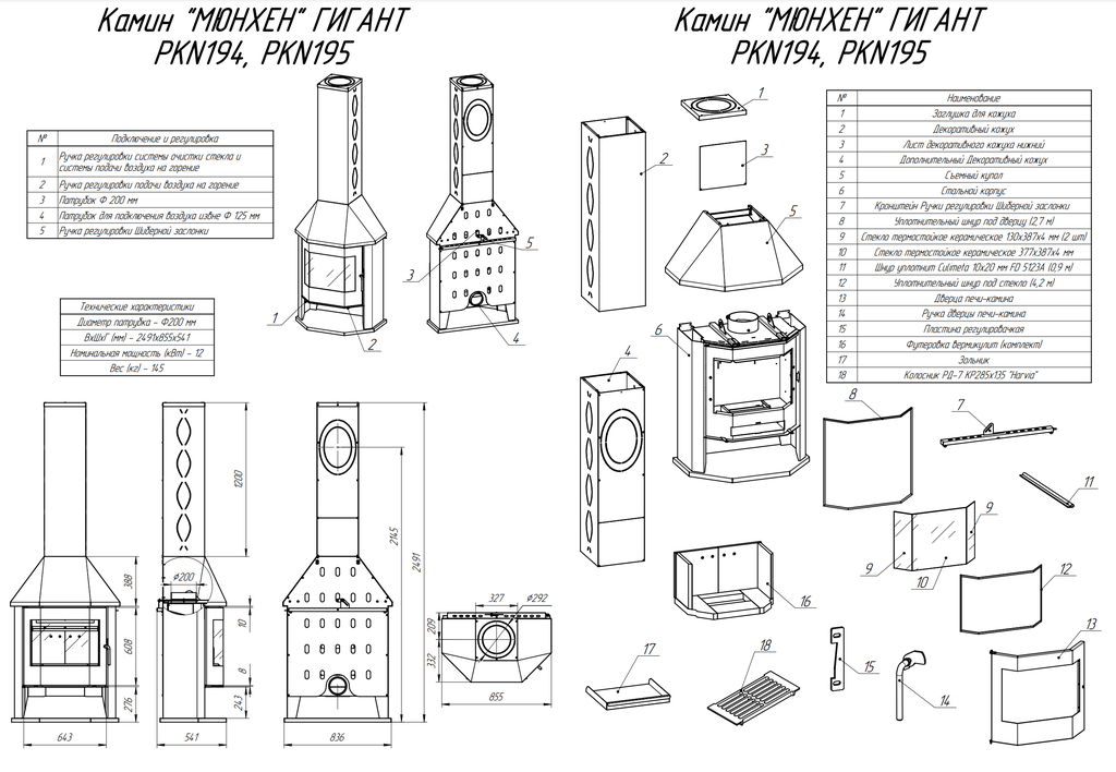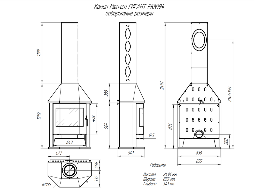 | Диаметр дымохода | 200 мм |