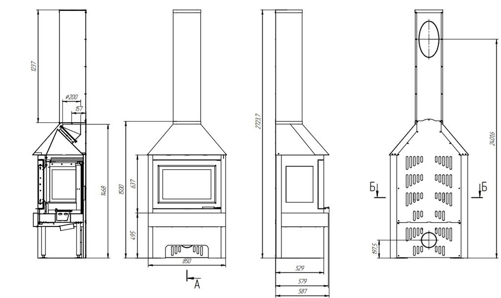Диаметр дымоходного патрубка - 200 мм