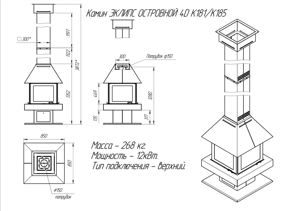 Диаметр дымоходного патрубка - 150 мм
