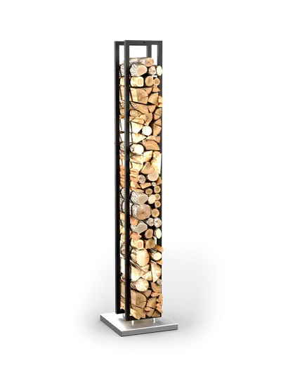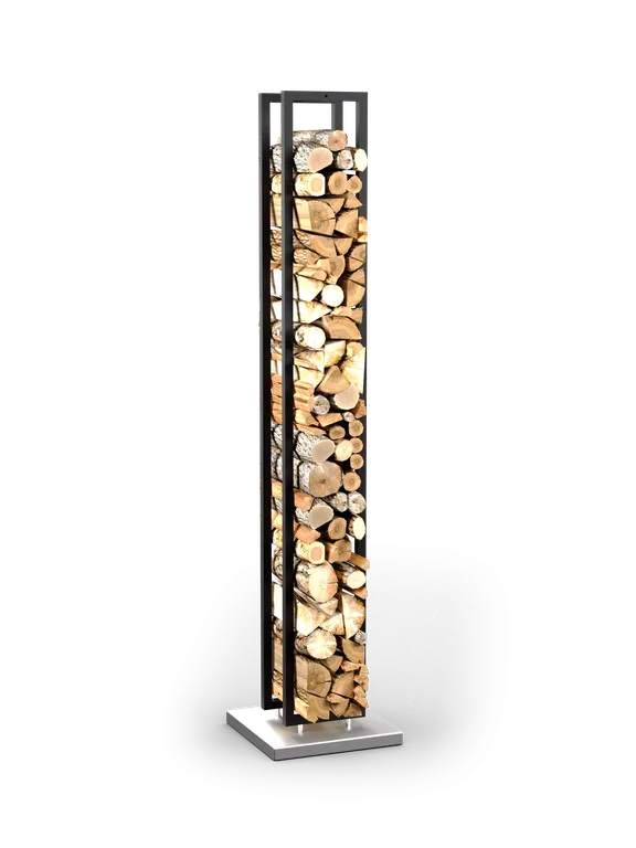 Дровник выполнен из стали в черном цвете. Основание изготовлено из нержавейки.