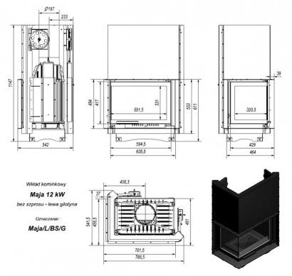 Модель MAJA/P/BS/G относится к чугунным топкам высокой мощности, с помощью